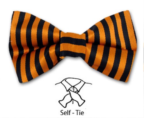 FBTS-ADF-6402 - Orange - Black - Self Tie Vertical Stripe Bowtie Overview