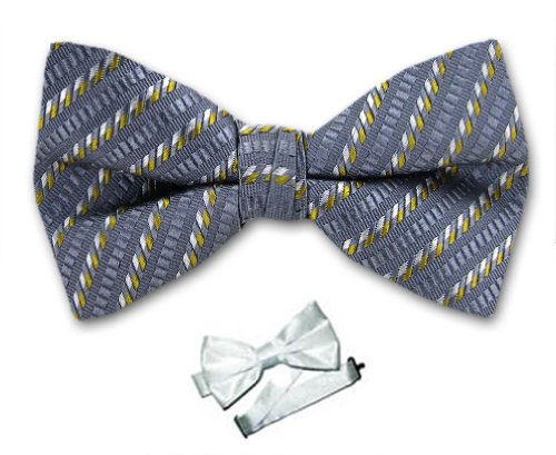 PBTS-1021 - Gray - Gold - Silver -Silk Pre-Tied Bowtie Feature